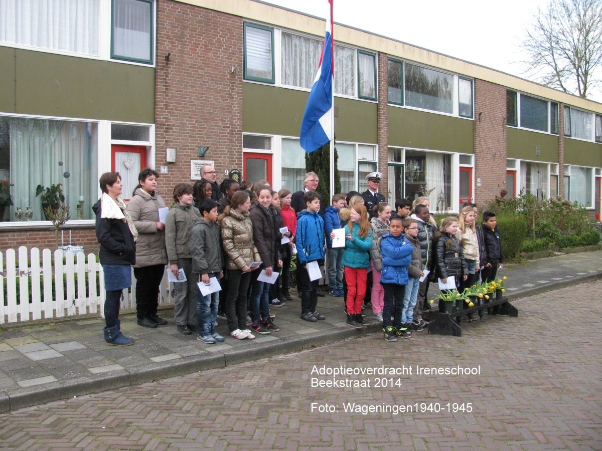 Op woensdagmorgen 26 maart 2014 om 9.30 uur vond in de Beekstraat de adoptieoverdracht plaats bij de Gedenksteen die herinnert aan de bominslag van 26 maart 1943 in het Roode Dorp.
