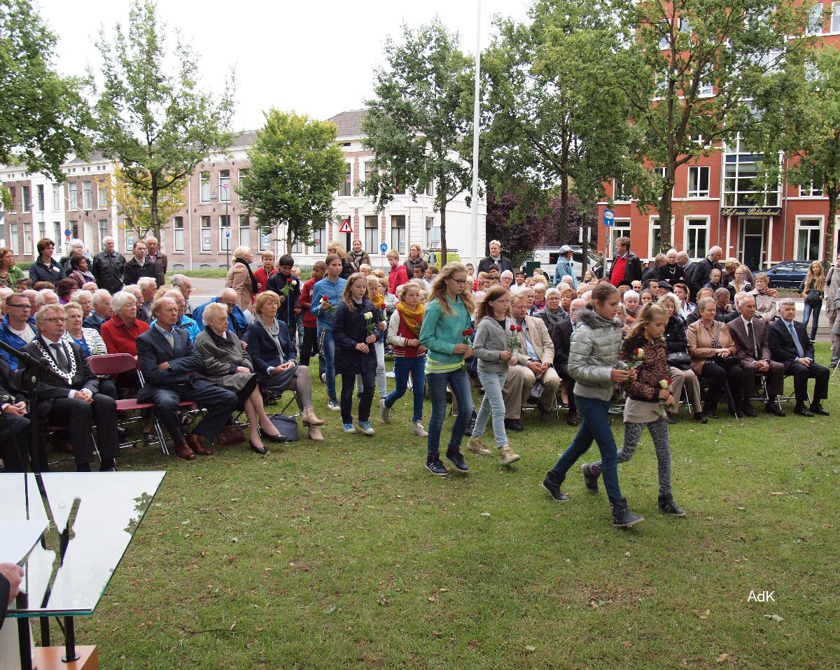Na het slotwoord van de ceremoniemeester werden bloemen gelegd door de nabestaanden en was er een drukbezochte bijeenkomst in het Stadhuis.