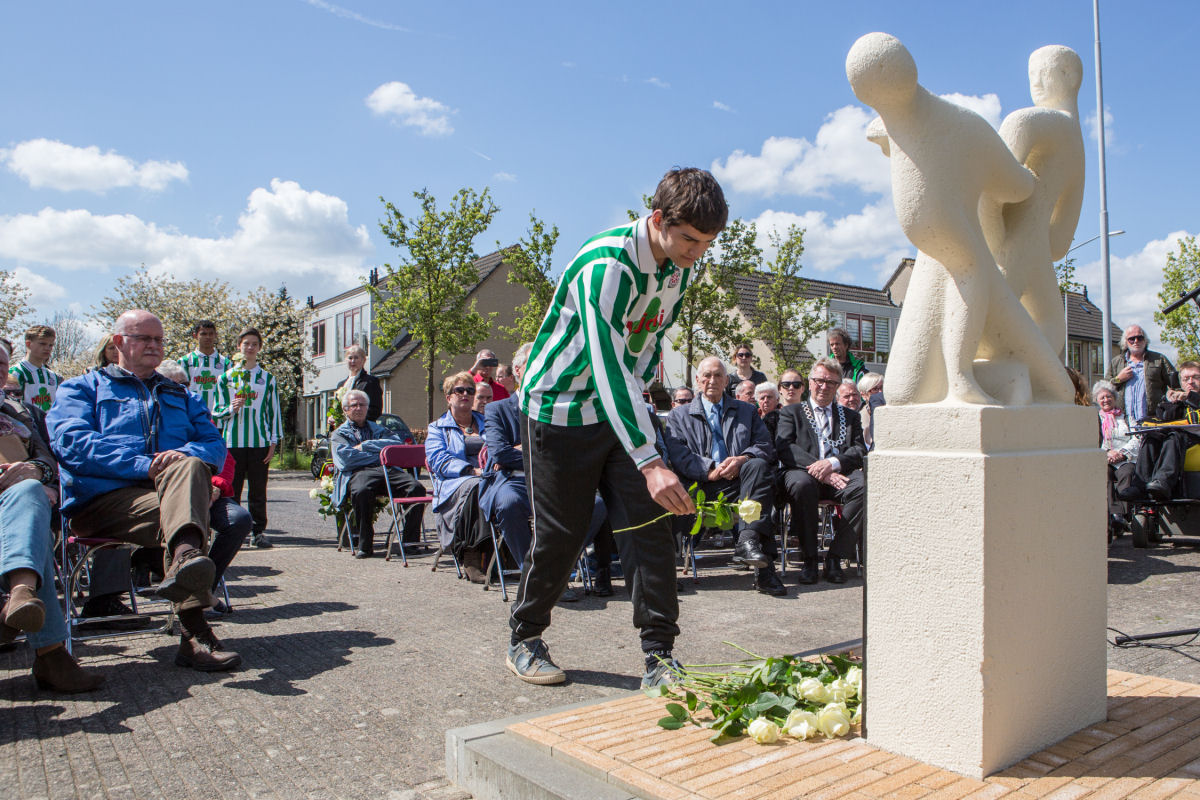 Tijdens het voorlezen van de 17 namen werden witte rozen gelegd door de jeugdleden van WVV.