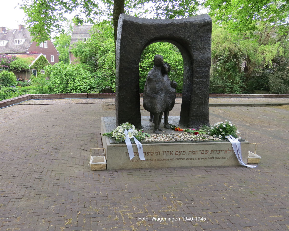 Burgemeester en mevrouw van Rumund legden de eerste krans namens de gemeente Wageningen, gevolgd door een kranslegging door de leerlingen van de Frisoschool, de adoptieschool.